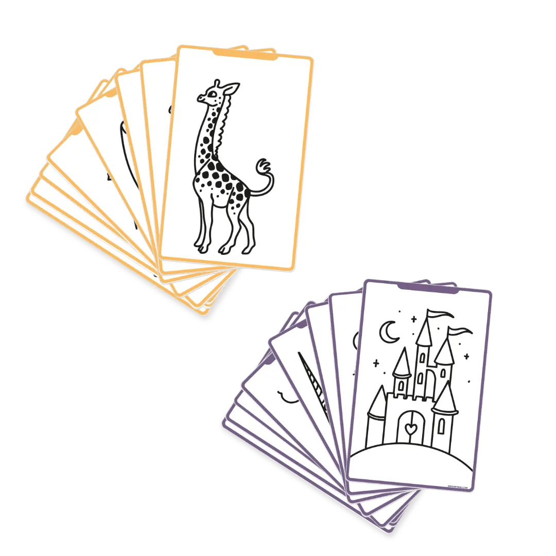 Ces 60 cartes recharges ont été conçues pour allier jeu et développement cognitif. Elles enrichissent l’expérience de la tablette KIDYDRAW-MINI (vendue séparément) avec de nouvelles cartes à décalquer éducatives.