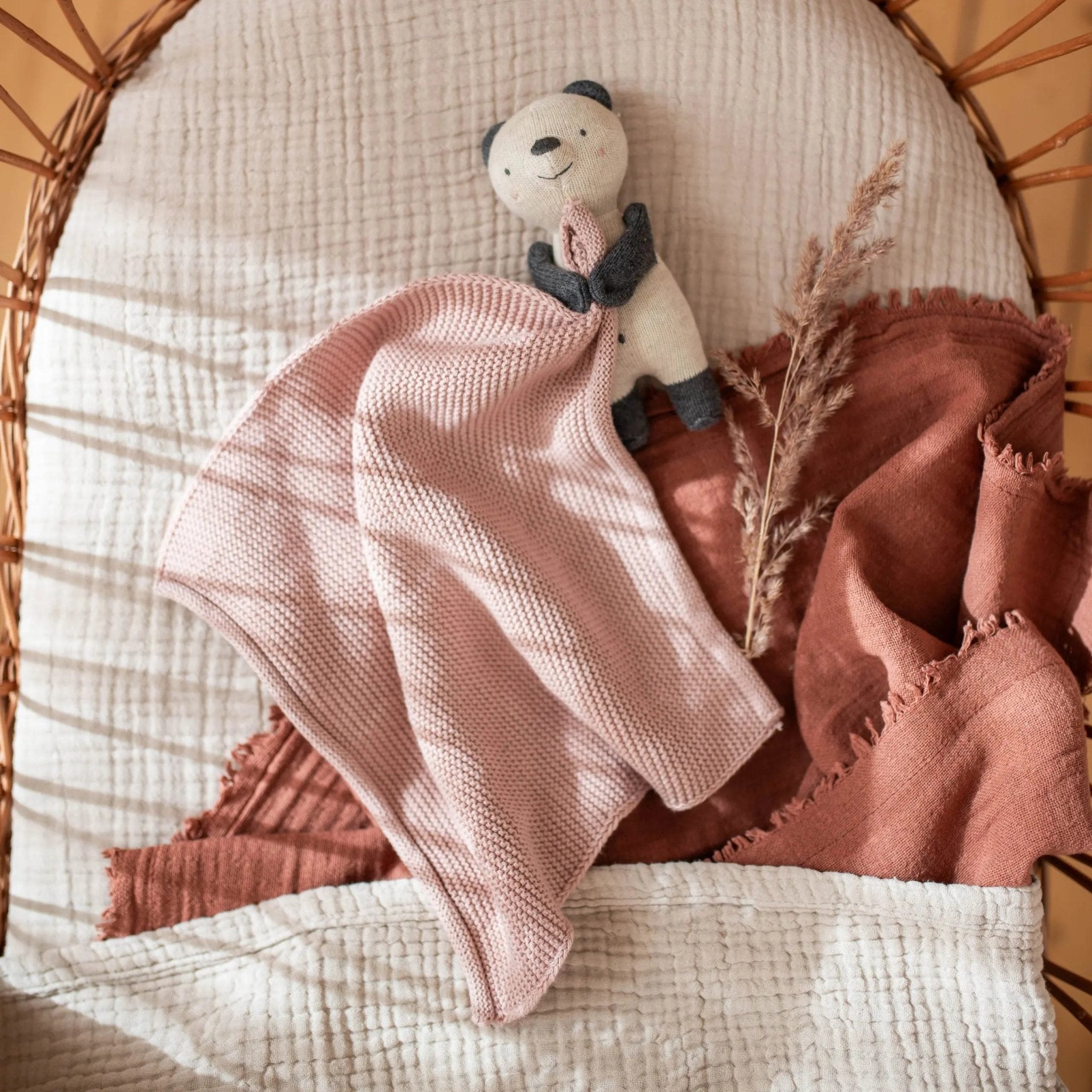 Bienvenue dans le monde merveilleux du doudou lange panda ! Cet adorable compagnon est spécialement conçu pour offrir du confort et de la sécurité à votre bébé. Ce doudou, avec son charmant panda attaché au tissu, est réalisé en tissu tricoté fin 100% coton biologique. Conforme aux exigences de la norme EN71, il est aussi sécuritaire que mignon.