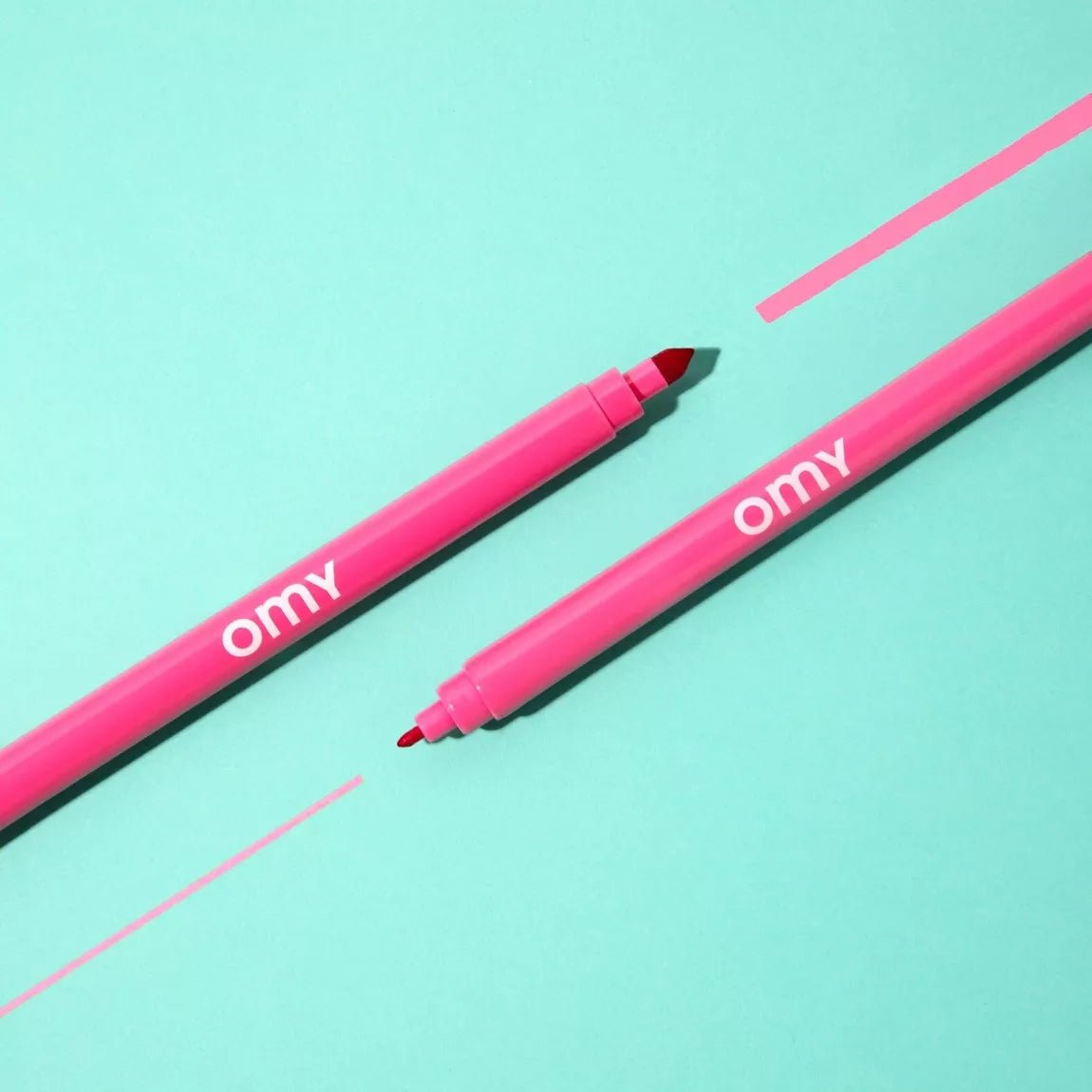 Grâce à leurs 16 teintes lumineuses, vos dessins prennent vie sur toutes les surfaces de coloriage OMY. Chaque feutre est équipé d’une double-pointe :
