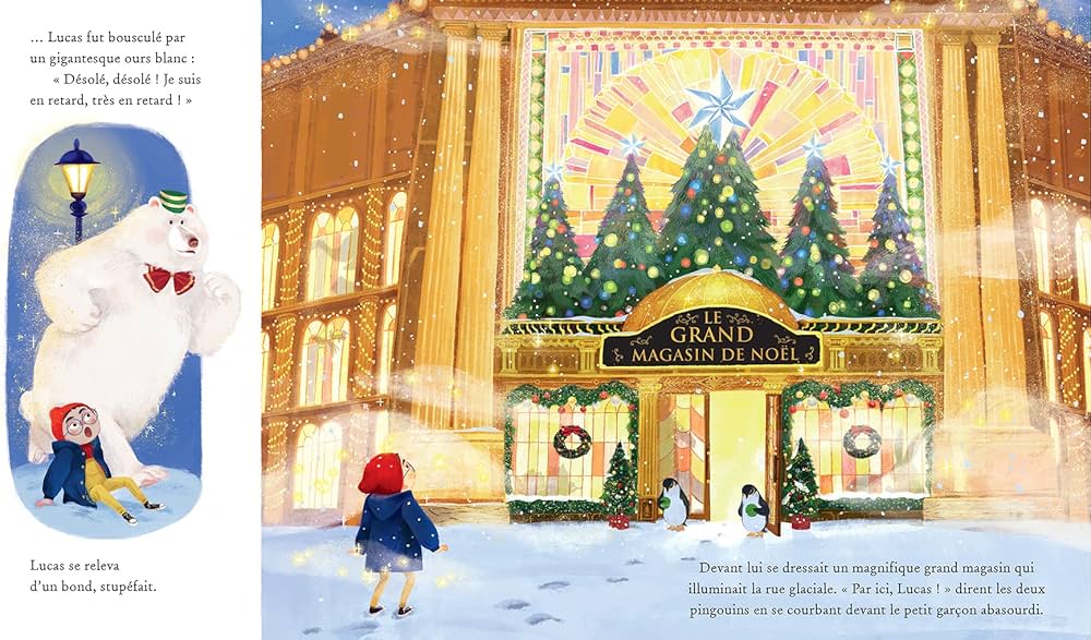 Lucas n’a pas le cœur à la fête cette année. Noël a perdu son éclat parce que sa famille n’a pas les moyens de s’offrir un sapin à décorer ou un dîner de fête. Mais, la veille de Noël, la magie opère : il est transporté dans le plus merveilleux des grands magasins, où les ours blancs parlent et où les cadeaux sont extraordinaires. Ensemble, ils vont découvrir que le plus beau des cadeaux, c’est souvent l’amour qu’on partage.