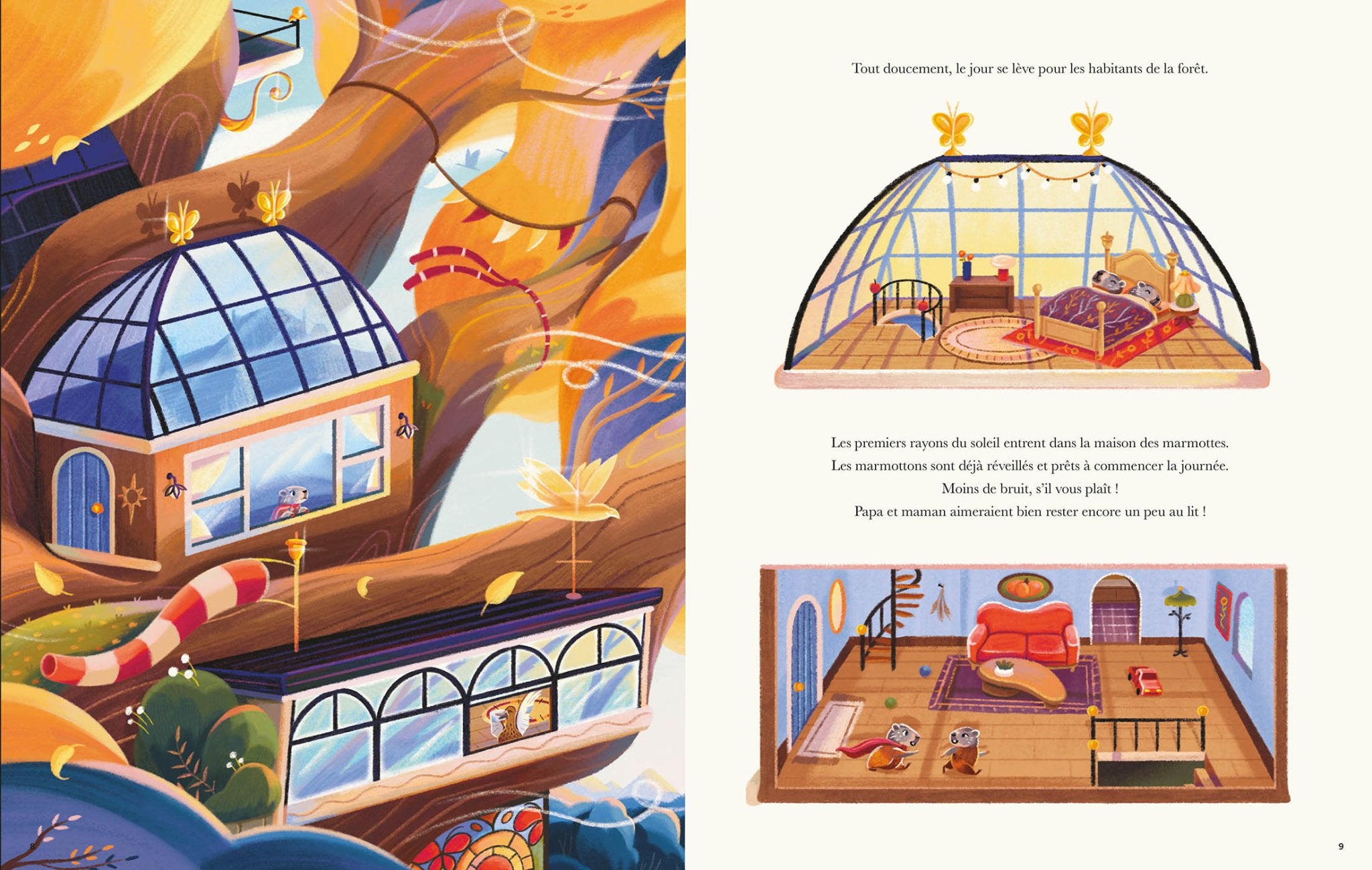 Le matin se lève sur la forêt… et derrière chaque branche, chaque tronc, se cache un monde insoupçonné. De la famille Marmotte à la famille Loir, découvrez la vie intime et foisonnante qui s’organise au cœur du grand chêne.